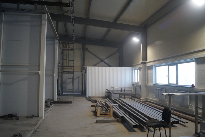 В новом цехе есть все необходимые зоны и помещения, линии для транспортировки туш, шкуросъемный аппарат, рабочее место для ветеринара, аппаратная шоковой заморозки, холодильники, весы, ленточные пилы и многое другое. В здании есть чистая вода, тепло, для персонала предусмотрены раздевалка, душевая, комната отдыха.